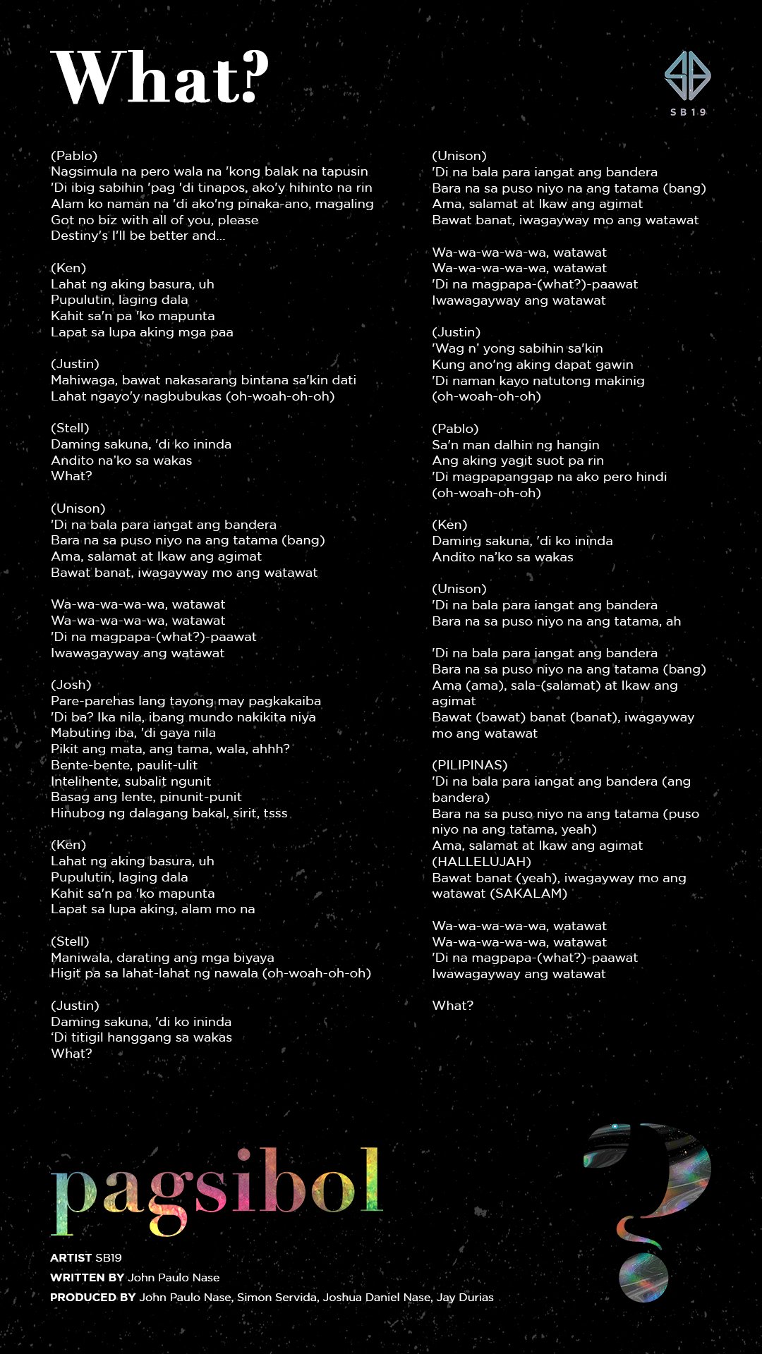 Sb19 Official On Twitter Sb19whatofficiallyrics Stream Sb19pagsibolep On Spotify Apple Music And More Music Platforms Now Https T Co 1usu3eladq Https T Co P9tycgfbvd